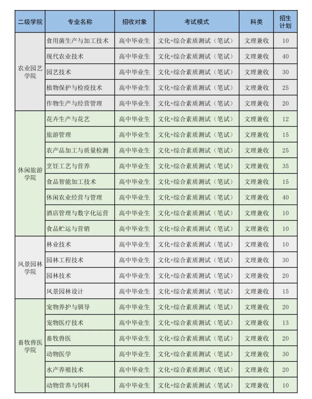 2023年成都农业科技职业学院单独招生计划2377名。其中:普高类973名,中职类1404名。招生专业、计划、收费标准均以四川省教育考试院公布为准。