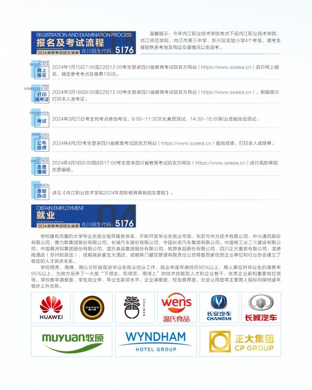 内江职院2024年单招招生简章