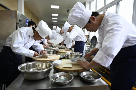 烹饪实训室:具备功能齐备、设施完善、性能先进、环境优良,满足中餐、西餐、面点等餐饮专业职业技术培训需求的实训基地,能满足教学需要和学生专业培训的需要。