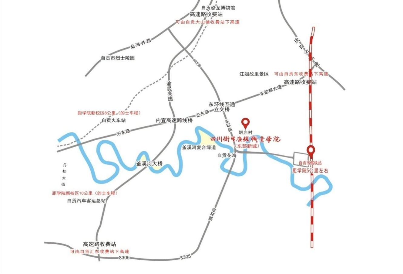 自驾车到校的考生及家长可直接导航输入“四川卫生康复职业学院(东部新城新校区)”即可到达学院。