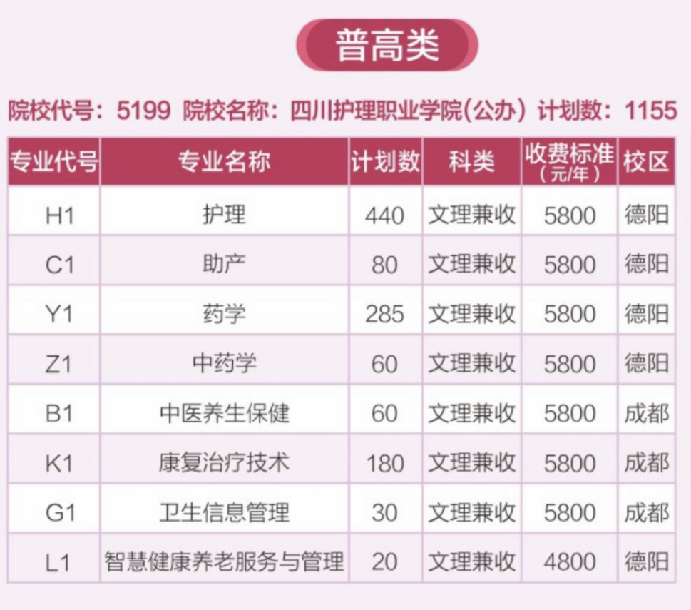 四川护理职业学院2024年单招计划发布(普高类)!