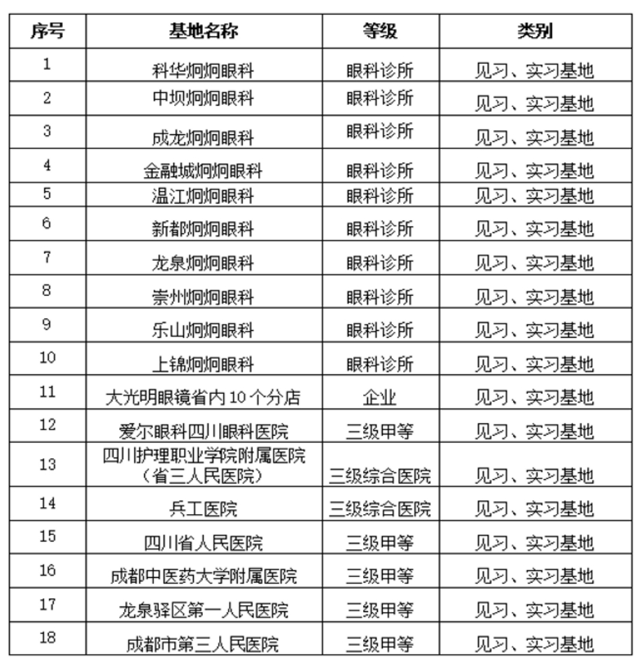 校企合作:学院和四川慧及视光医疗器械有限公司、炯炯眼科签订了医校企合作意向协议,就专业建设、人才培养、师资队伍建设等达成共识,拟开展深度产教融合合作。目前学院共拥有30余家适宜眼视光人才培养需要的优质见习、实习基地,各见习、实习基地软硬件条件良好,专业覆盖率达100%,满足眼视光技术专业学生实践教学要求。