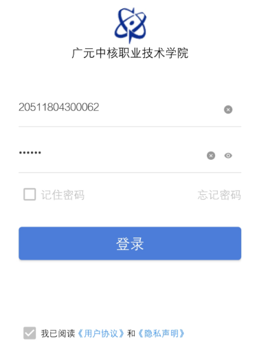 2、下载好后,进入登录界面,输入用户名(学号),密码(身份证后6位)登录。