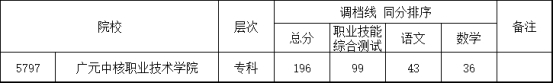 依据《四川省教育厅关于做好2024年高等职业教育单独考试招生有关工作的通知》(川教函〔2023〕332号)及《广元中核职业技术学院2024年高职单招招生章程》相关要求,现将我校高职单招单招录取调档线通知如下: