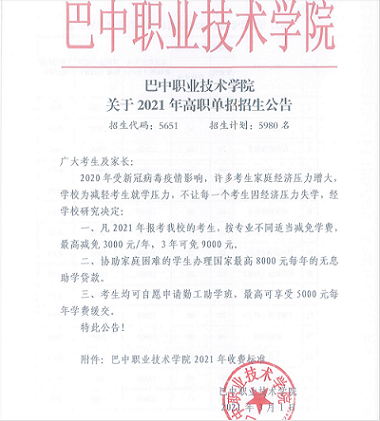 2020年受新冠病毒疫情影响,许多考生家庭经济压力增大,学校为减轻考生就学压力,不让每一个考生因经济压力失学,经学校研究决定: