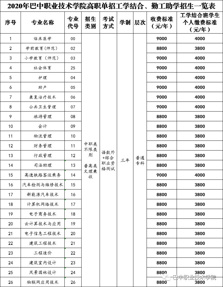 单招正在进行志愿填报,感谢已填报我校的同学对巴中职业技术学院的信任,也请相信自己正确的选择,我校本着“德行合一、文技兼修”校训,致力于为求学路上的你营造一个良好的学习环境,让你能学以致用、学有所成。我校为了维护同学们就读期间的合法权益,减轻学生家庭经济压力,创建和谐校园,保证培养质量,顺利完成学业,拓展升学前景,成就辉煌人生,2020级新生可根据自身情况自愿选择就读我校工学结合班,现针对我校工学结合班的学生做如下郑重承诺: