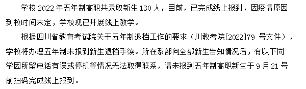 川南幼儿师范高等专科学校关于2022级五年制高职新生未进行线上报到的公告