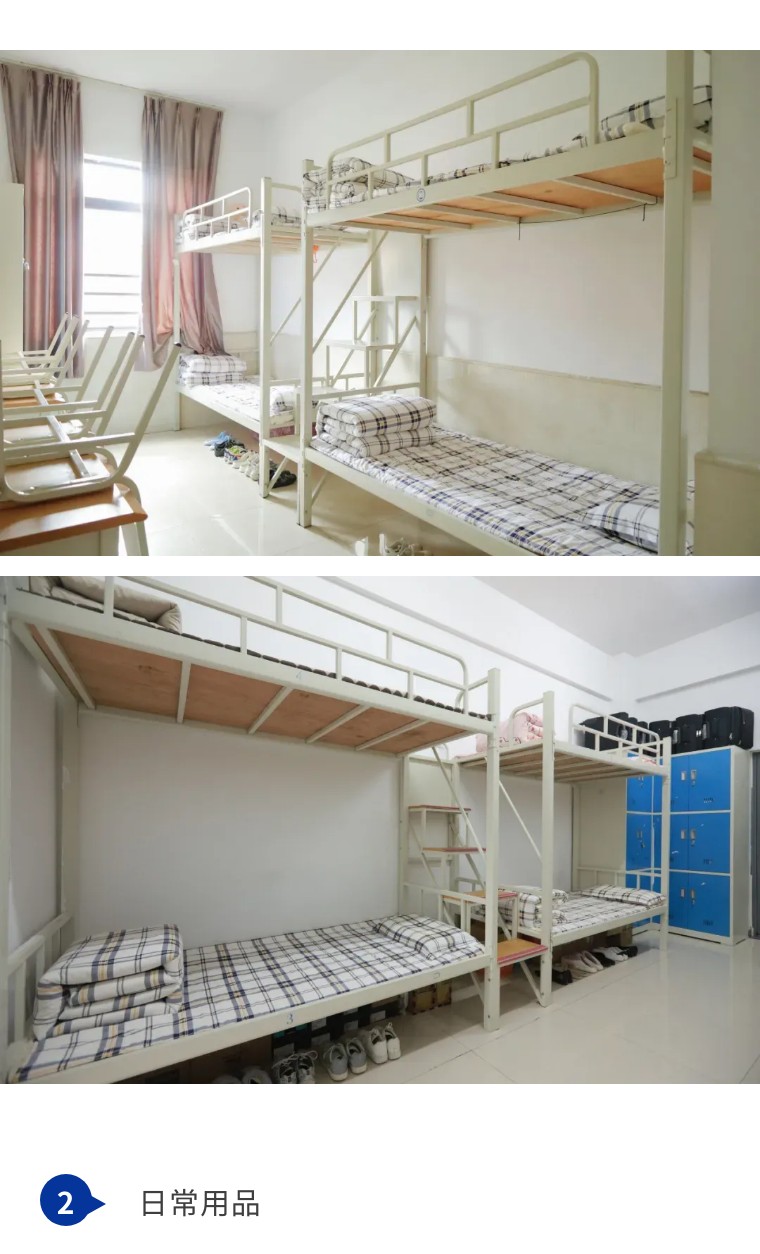 2.学校会统一发放床单、被子、枕头等床上用品,方便新生开学时行李从简。