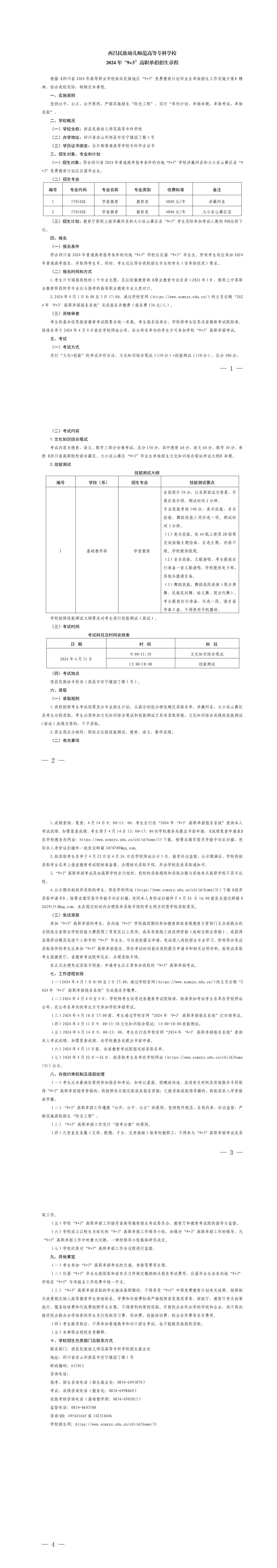 西昌民族幼专 2024年“9+3”高职单招招生章程