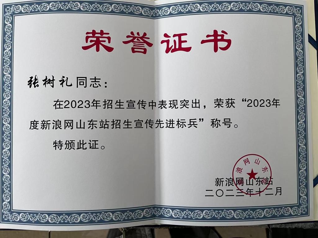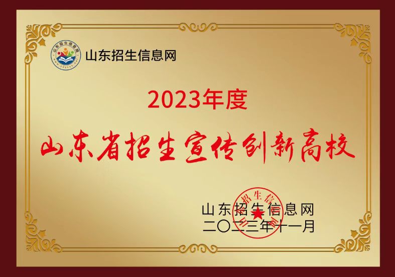 学校招生工作得到了多家主流媒体的高度认可,2023年分别获评中国新媒体联盟“2023年度招生宣传社会贡献奖”、齐鲁晚报“2023年度招生宣传综合影响力年度十强”、“2023山东高考招生宣传锐意创新高校”、齐鲁招生网“高中高校对接育人突出贡献奖”、山东招生信息网“2023年度山东省招生宣传创新高校”、阳光教育在线“2023年度招生最具影响力高校”、中国教育在线“2023年度山东省最受中学认可高职院校”。招生办公室张树礼获评新浪网山东站“2023年度新浪网山东站招生宣传先进标兵”、齐鲁晚报“2023山东高考招生宣传锐意创新个人”,进一步扩大我校社会美誉度和影响力。