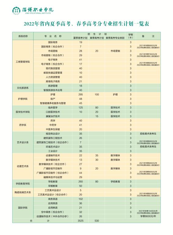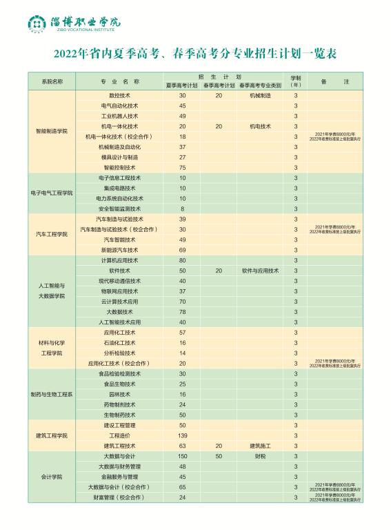2022年省内夏季高考、春季高考分专业招生计划一览表