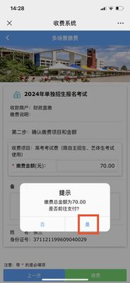 凡是2024年单独招生报名成功的考生,请在规定的时间内进行网上缴费,其缴费方式为微信缴费。根据《关于高校组织招生考试收费标准的批复》(鲁发改价格〔2024〕58号)文件的相关规定,单独招生普通类考生报名考试费70元/人,单独招生退役军人类考生报名考试费80元/人(缴费问题咨询电话:0631-5700499)。