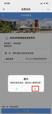 三、核实身份信息无误后,点击“是”,进入缴费页面。