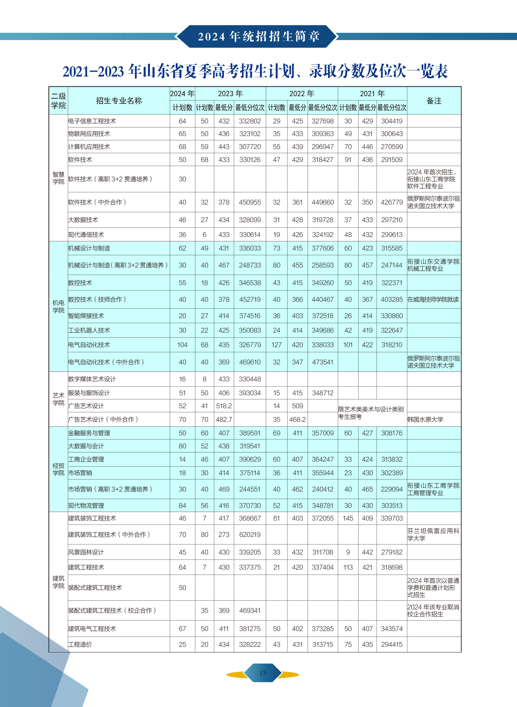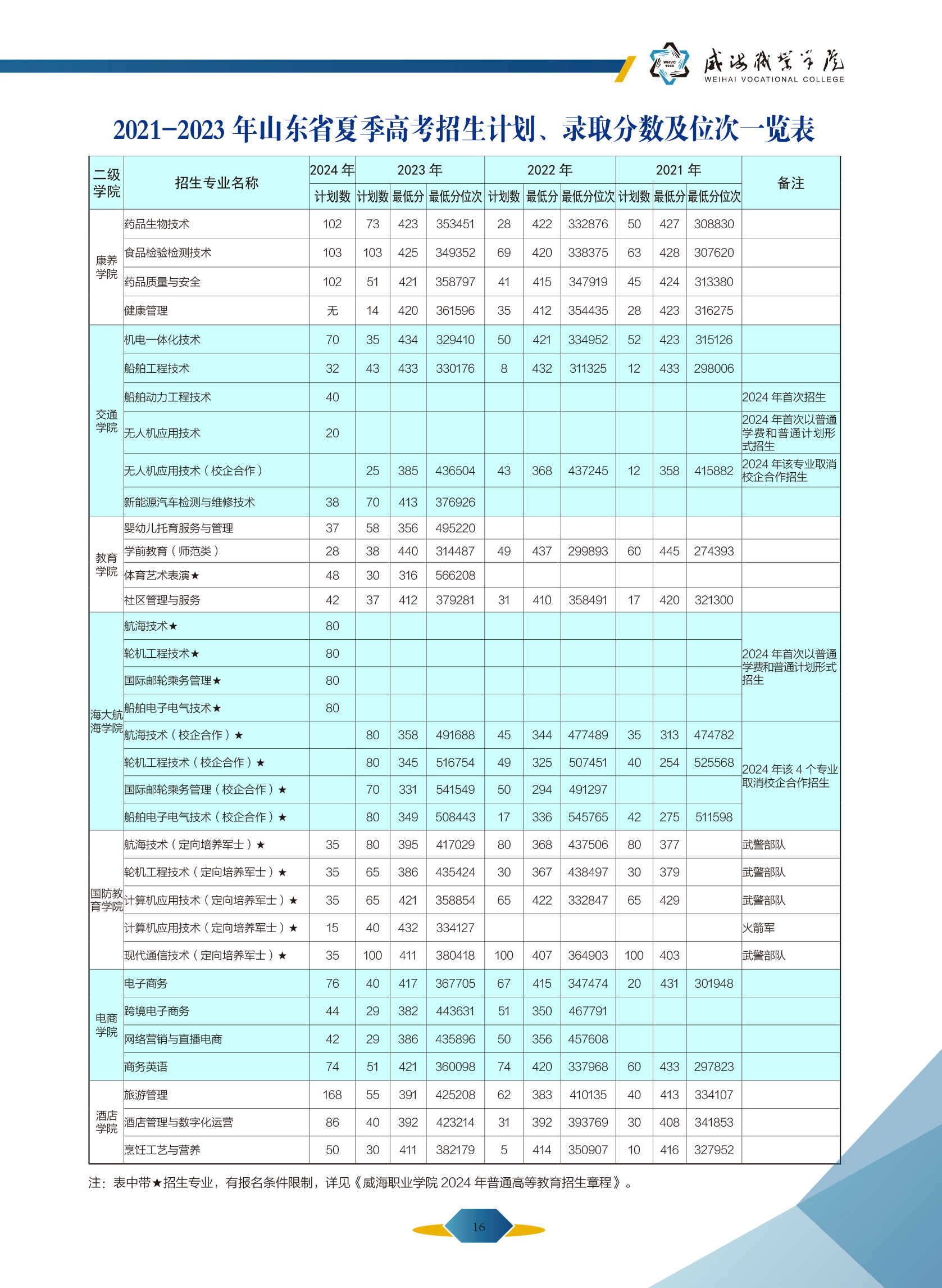 威海职业学院2023年山东省夏季高考招生计划、录取分数及位次一览表(附加2024年招生计划)