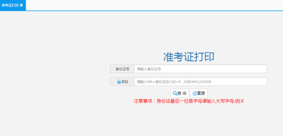 1. 考生们根据自己的考试类型,选择准考证打印入口(打印入口在此页面最后),进入之后,出现如下图的页面: