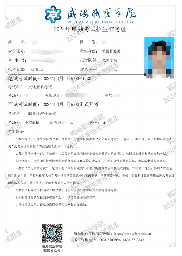 欢迎报考威海职业学院2024年单独考试招生(以下简称单独招生)考试!祝愿你取得优异成绩!推荐考生使用电脑操作,优先选择使用谷歌浏览器或者360浏览器极速模式,并按照以下提示打印准考证(提醒考生:先认真把此页面的文字看完,再开始打印操作,以免遗漏信息)。