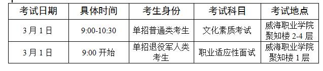 (1)威海职业学院2024年单独考试招生准考证;
