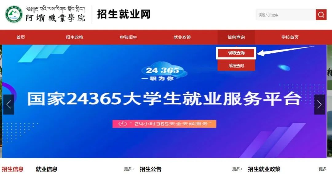 录取通知书查询方法01考生可登录“阿坝职业学院招生网”