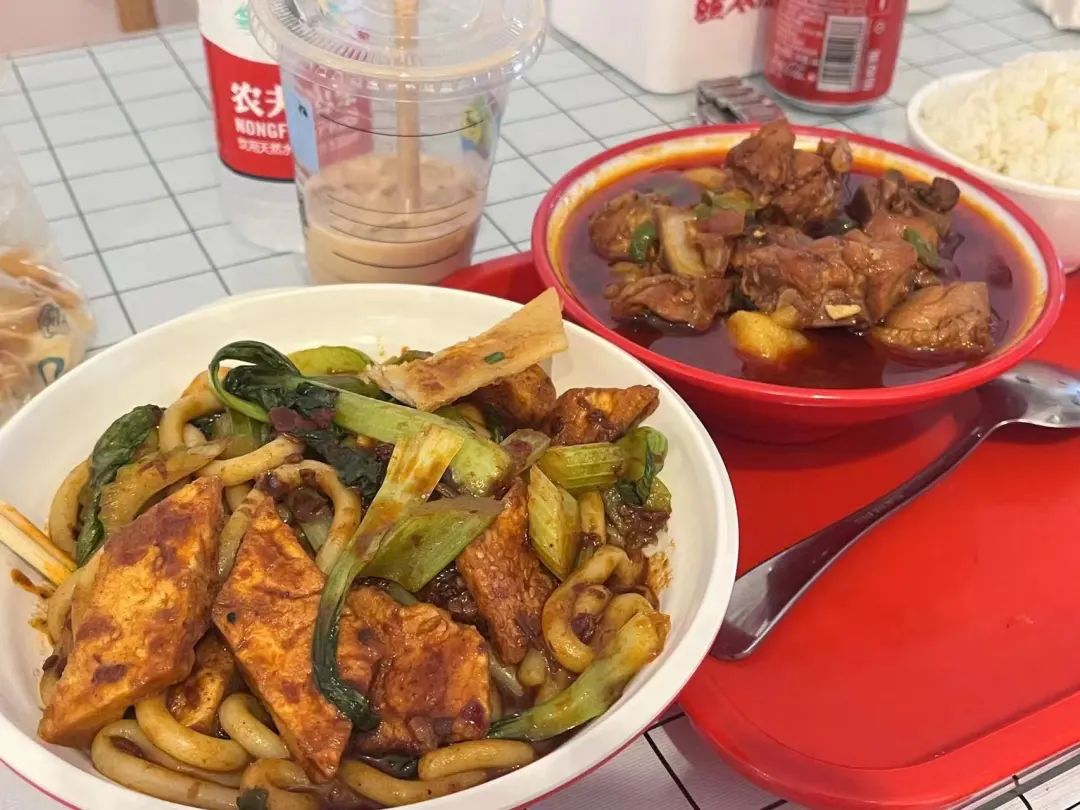 烤鸭饭、海带肉丝汤、小炒肉、冒菜、干锅鸡、蒜苔炒肉、水煮肉片、鸡排饭……