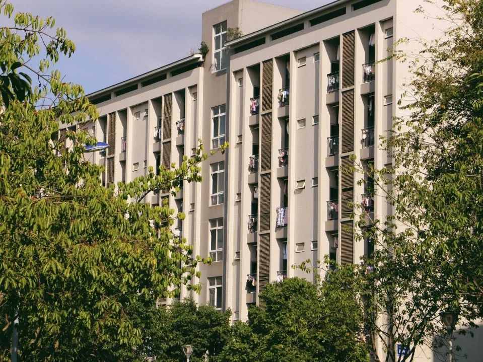 学生宿舍均为6人间的标准化大学生公寓,配备有空调、网络、书桌、书架、独立卫生间、淋浴、洗漱阳台、独立衣柜、鞋柜等。同时,宿舍各楼层还设有学生自习室、洗衣房、24小时直饮水机,条件优越。
