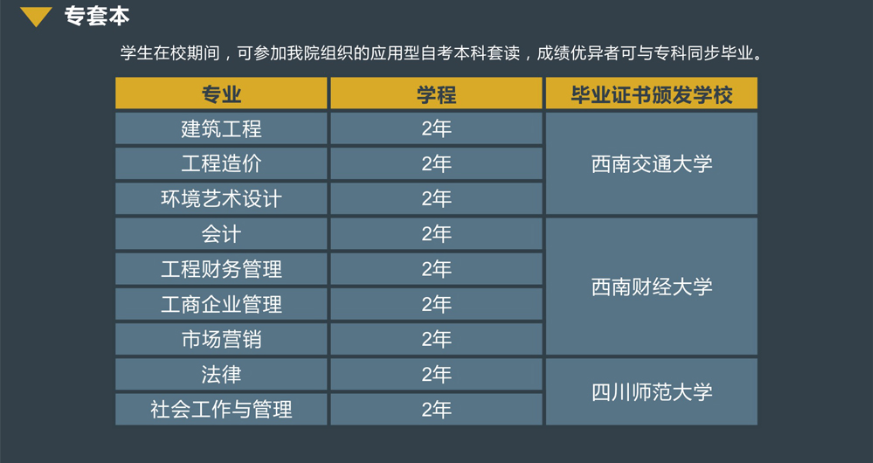 ②节省时间:在专科学习期间专本套读,只需3年就可完成专、本科学习。