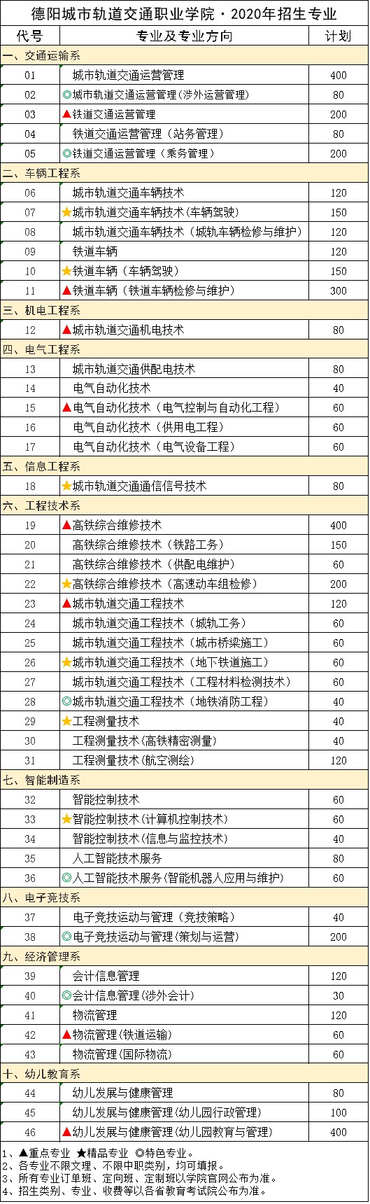2020年单招 l 德阳城市轨道交通职业学院答考生问