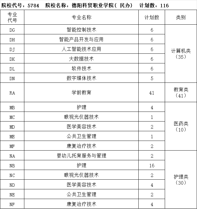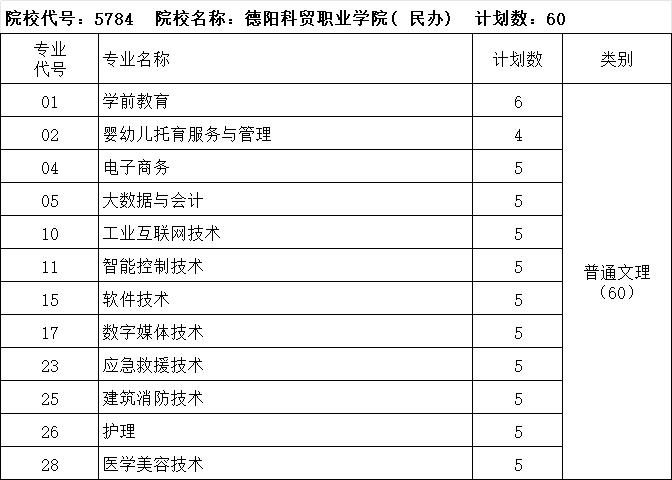 根据2024年四川省教育考试院招生录取工作安排,德阳科贸职业学院(在川招生代码:5784),现将普通文理及对口高职招生专业计划面向全省单招考生火热征集中,有关事宜公告如下: