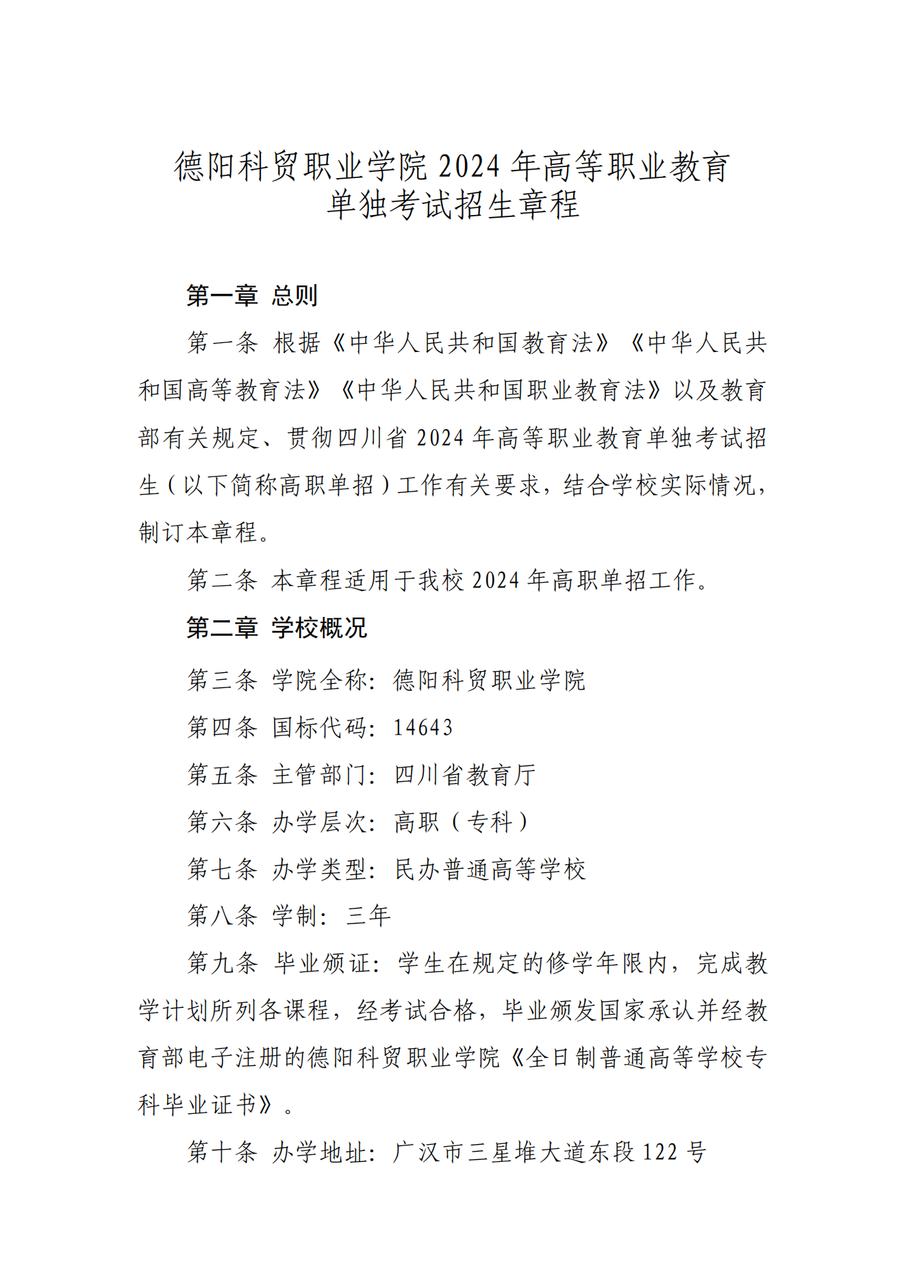 德阳科贸职业学院2024年高职单招招生章程.pdf