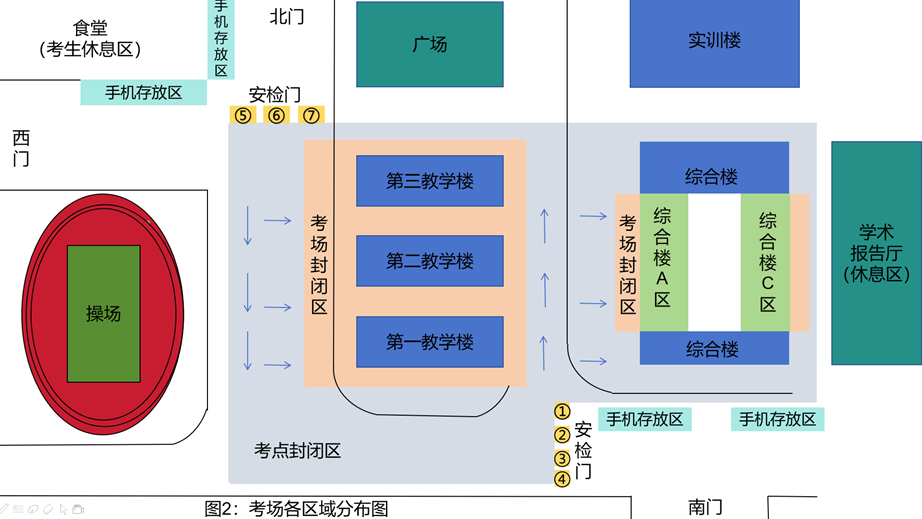 根据四川省教育考试相关规定,本考点将使用智能安检门、金属探测器对入场考生进行检查,建议考生至少提前1小时从学校南门进入考点。请考生遵守考场纪律,维护公平竞争,严禁携带手机等通讯工具进入考点。