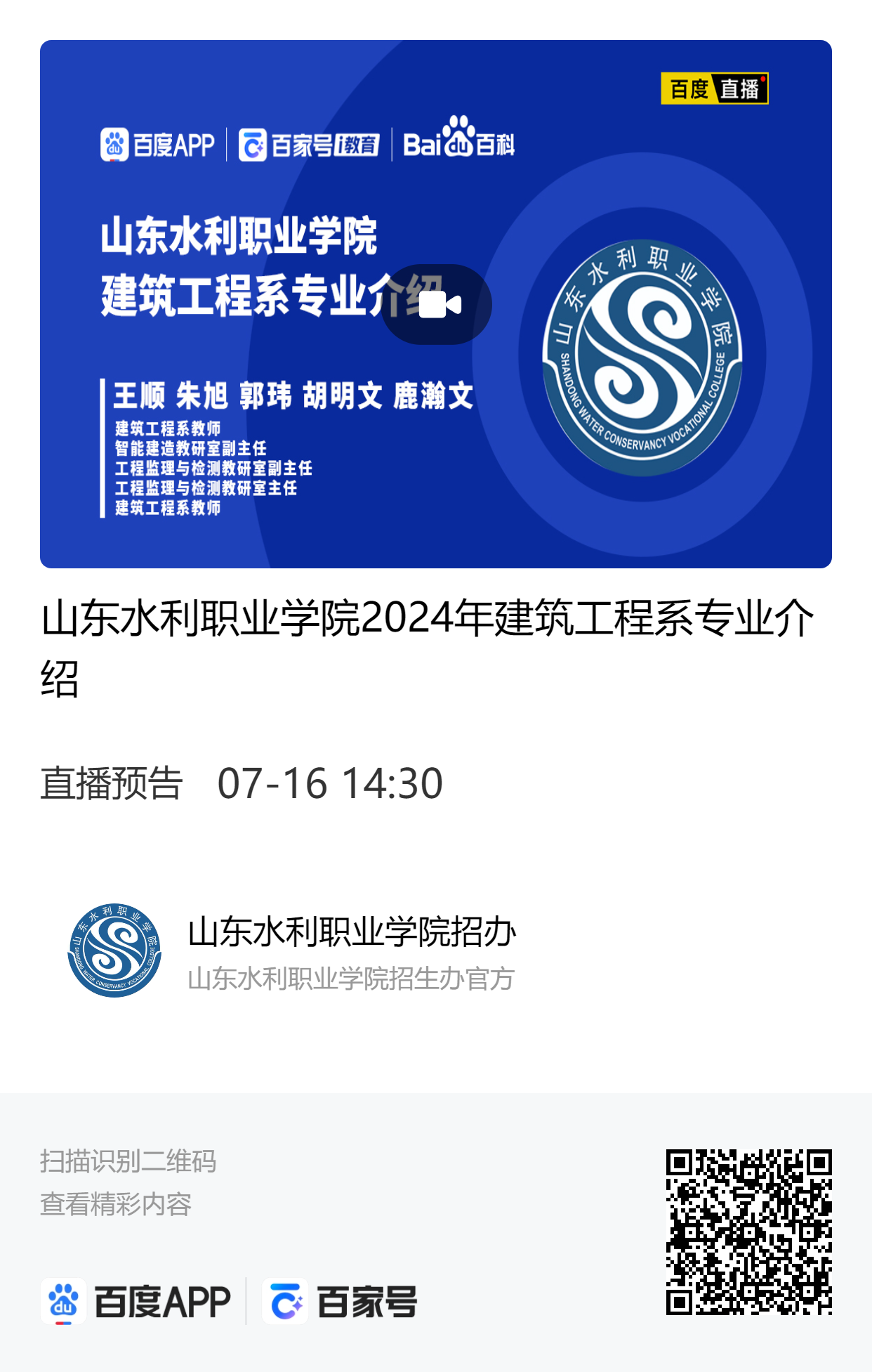 7月16日(周二) | 10:30-11:30 | 水利工程系 | 专业解读 |