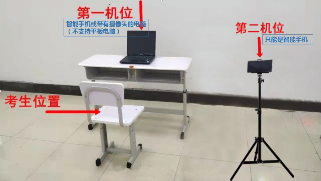 (2)阅读完人脸认证注意事项后,选择正常工作的摄像头,点击“开始人脸识别”(3)人脸认证成功后,点击“下一步”,进入考场注意:若人脸认证失败,可以点击“重试”进行重新识别,或点击“下一步”正常进入考场,由考官进行人工身份比对。5.加入第二机位进入人机笔试界面后,需要添加二机位。步骤如下:打开第二机位的手机“云考AI”app首页,点击加入第二机位,扫描第一机位屏幕左侧二维码(点击二维码,二维码自动放大并出现于屏幕中央)(手机端无需登陆,直接点击”扫描二维码”即可),加入第二机位成功。然后按照手机摆放位置要求进行摆放,等待发卷。手机二机位加入成功后,会显示“视频已加入”。根据考试要求,将二机位手机置于指定位置,此时,一二机位布置成功。