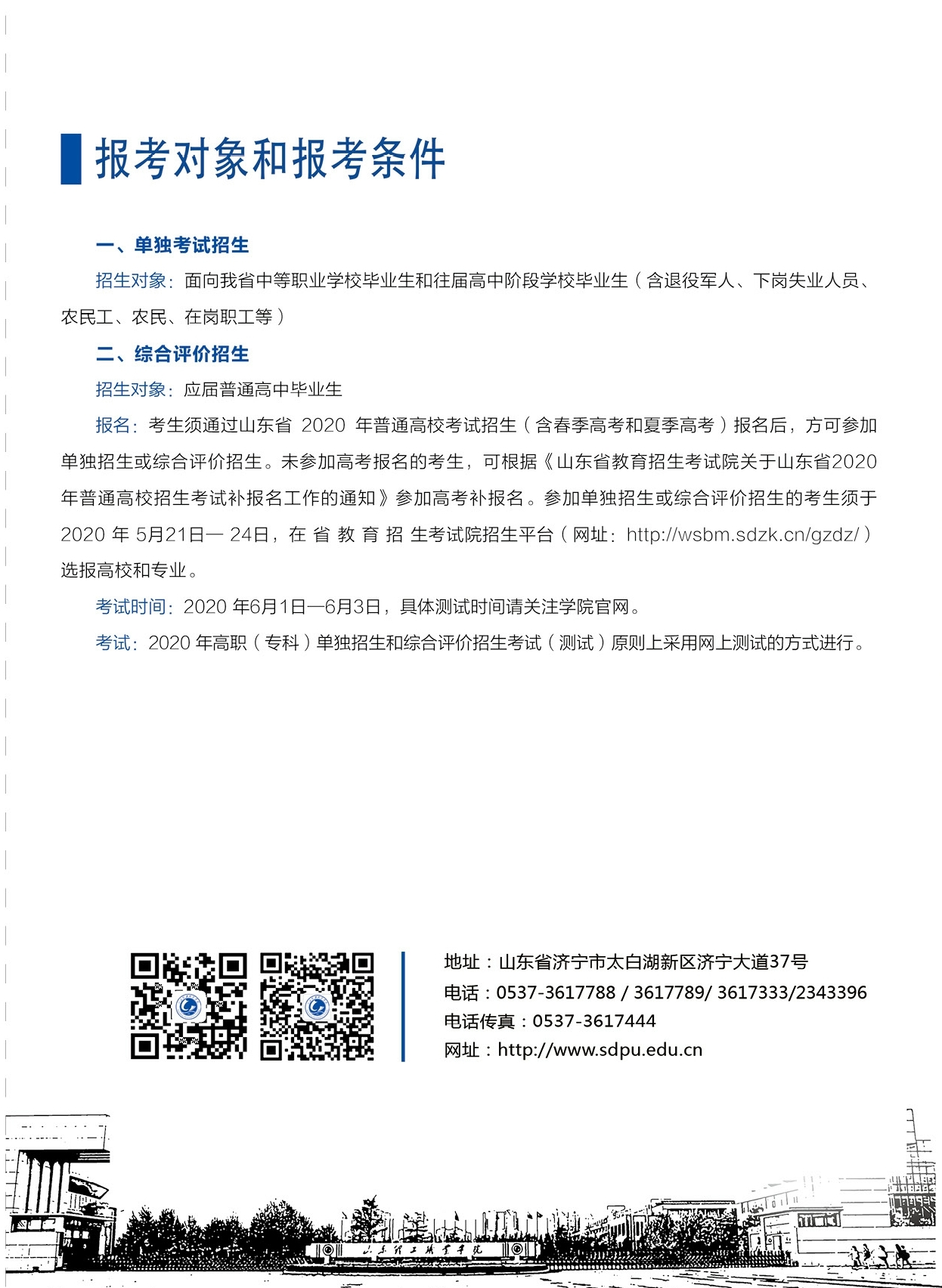 山东理工职业学院高职(专科)2020年单独招生、综合评价招生简章