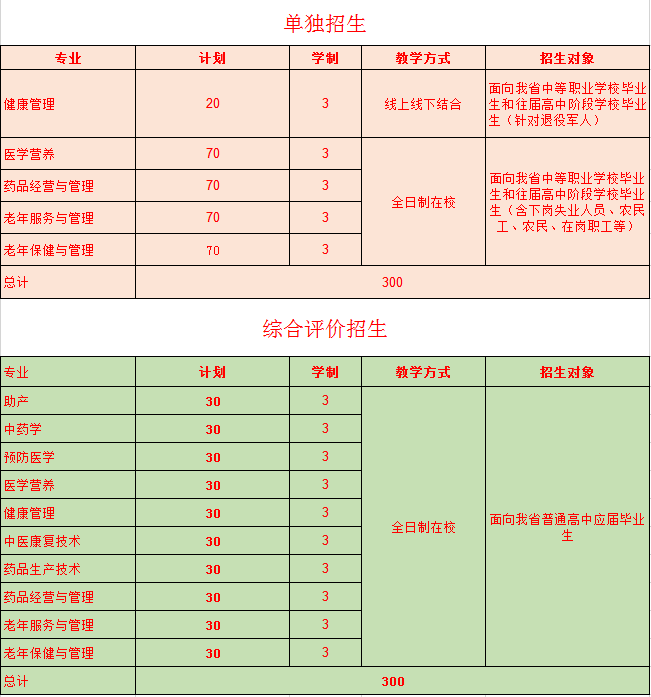菏泽医学专科学校2021年高职(专科)单独招生和综合评价招生计划