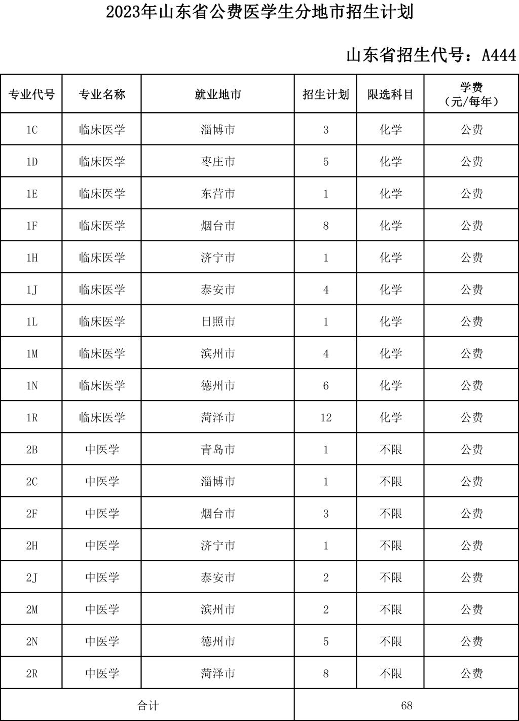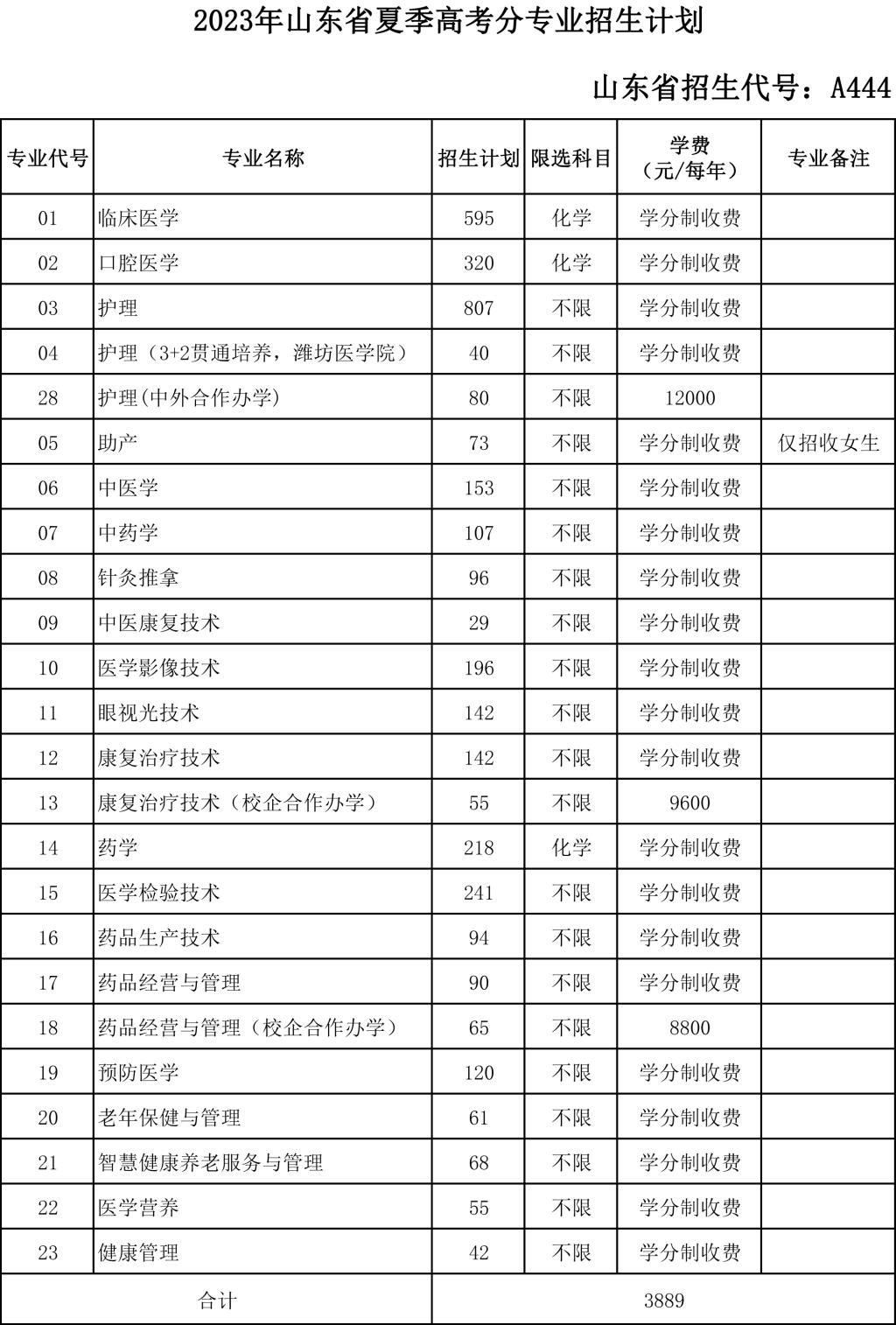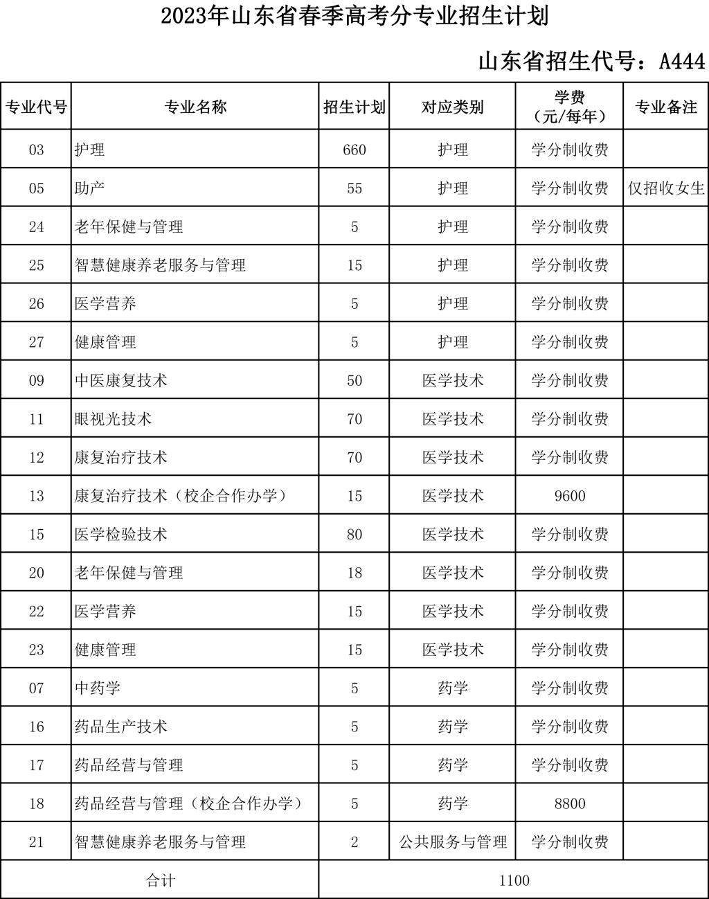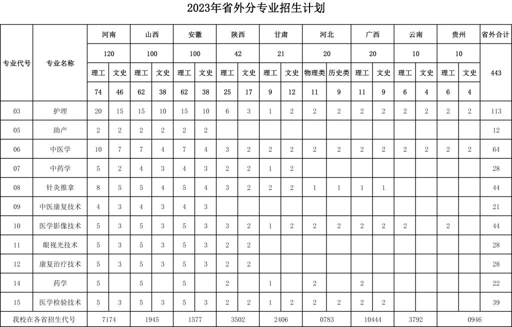 菏泽医学专科学校2023年分省分类别分专业招生计划