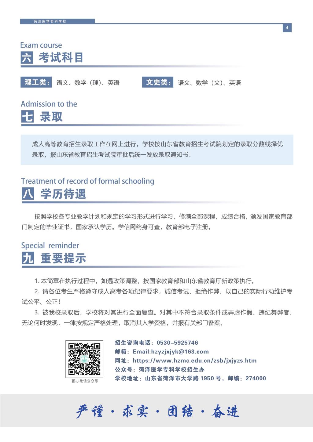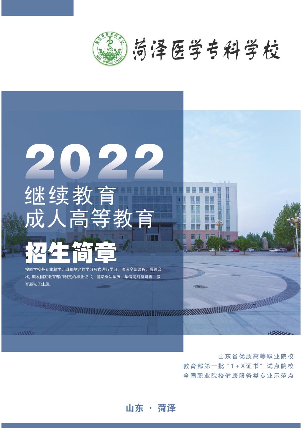 菏泽医学专科学校2022年成人高等教育招生简章
