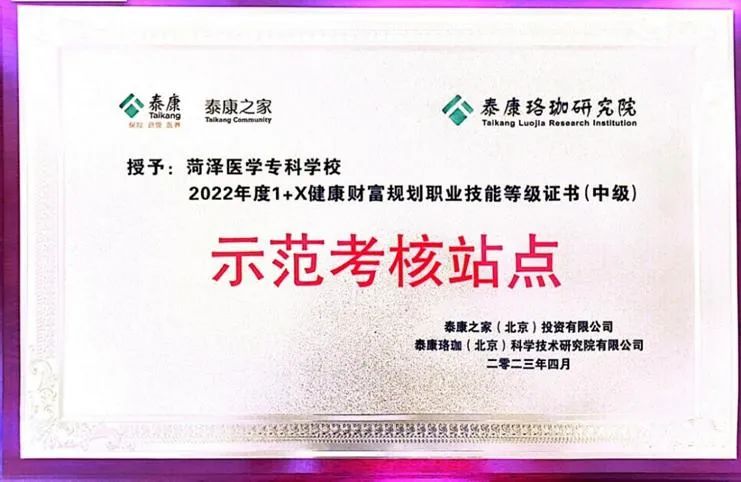 与泰康珞珈研究院联合开发健康财富规划职业技能等级证书资源,与山东育达健康科技股份有限公司等省内外20余家企业签订合作协议开展订单培养,承担健康财富规划1+X职业技能等级证书考核,培训人次达900余人次,通过率97.6%。