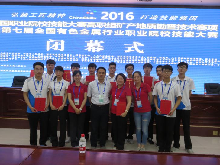 2010年,在第一届全国有色金属行业职业院校学生职业技能竟赛中,我专业代表队获得了一举囊括了该工种全部三个一等奖,并获得团体优胜奖第一名。2015年第六届全国有色金属行业职业院校技能大赛中,获团体一等奖,其中四名选手获得了氧化铝项目第一、二、三、四名,三名选手获得电解铝项目一等奖。在2016年第六届全国有色金属行业职业院校技能大赛中,获团体一等奖,其中四名选手获得了氧化铝项目第一、二、三、四名,四名选手获得铜冶炼项目第一、二、三、四名,两名选手获得电解铝项目一等奖。