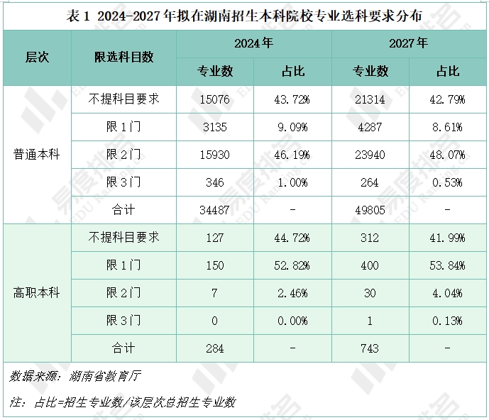 一、不提科目要求专业数占比下降,招生专业对选科要求更加严格