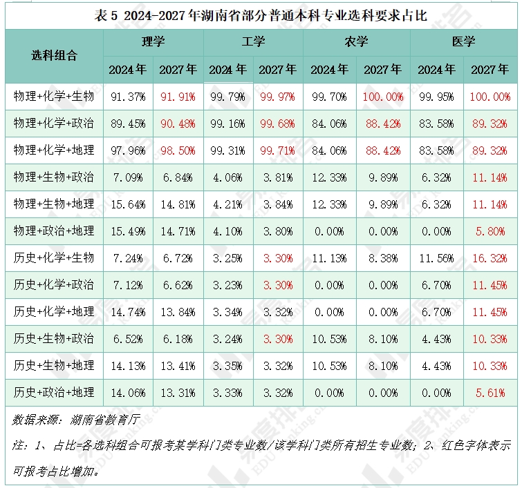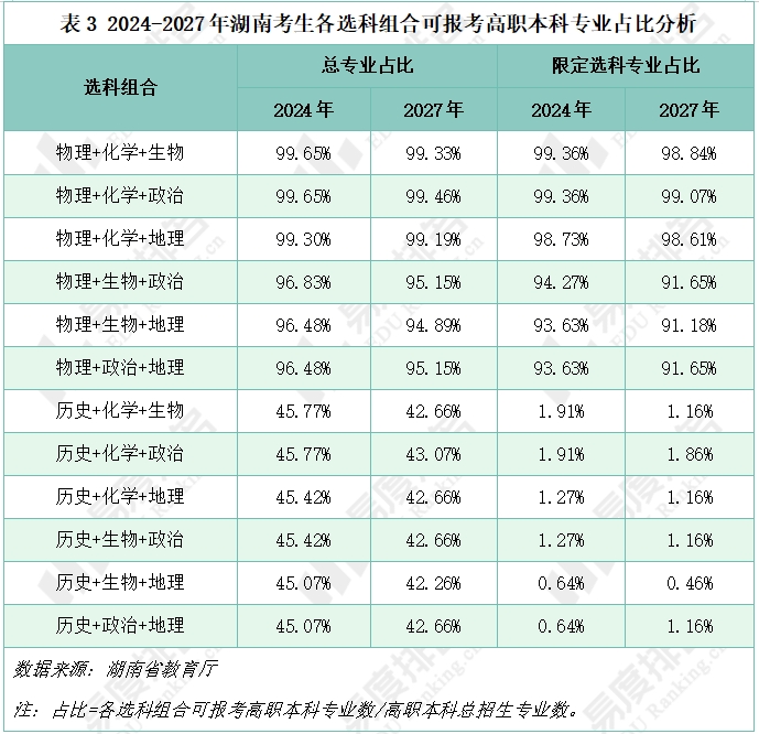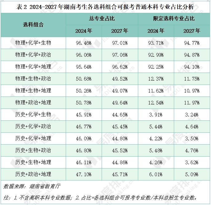 近日,湖南省教育厅发布了《湖南省教育厅关于公布招生高校 “通用版(2027)”选考科目要求的通知》(以下简称:通用版2027),该选科要求供2024年及以后年份进入高中一年级的普通高中学生选科时参考,2027年及以后高考将按此选考科目要求进行录取。2025年、2026年高考选科要求仍以普通高校根据2021年《普通高校本科招生专业选考科目要求指引(通用版)》(因该文件自2024年开始实施,以下简称:通用版2024)所编制的招生专业选考科目要求作为参考。