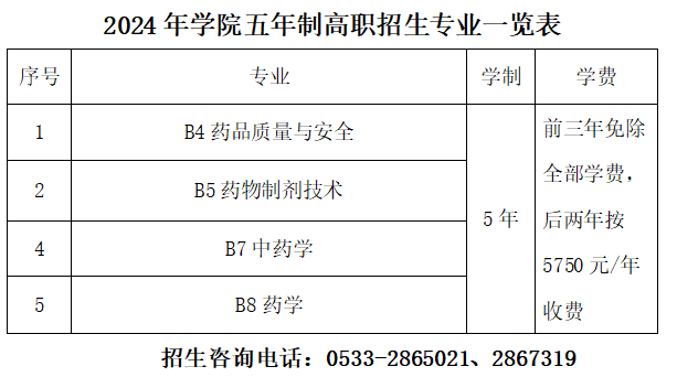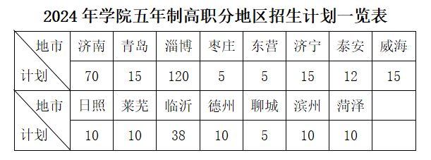 2024年学院五年制高职招生计划