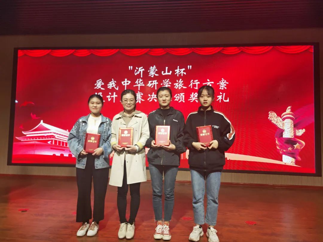 2.“沂蒙山杯”爱我中华研学旅行方案设计大赛(1)2名教师获优秀指导教师奖;(2)1个团队参赛作品获得三等奖。