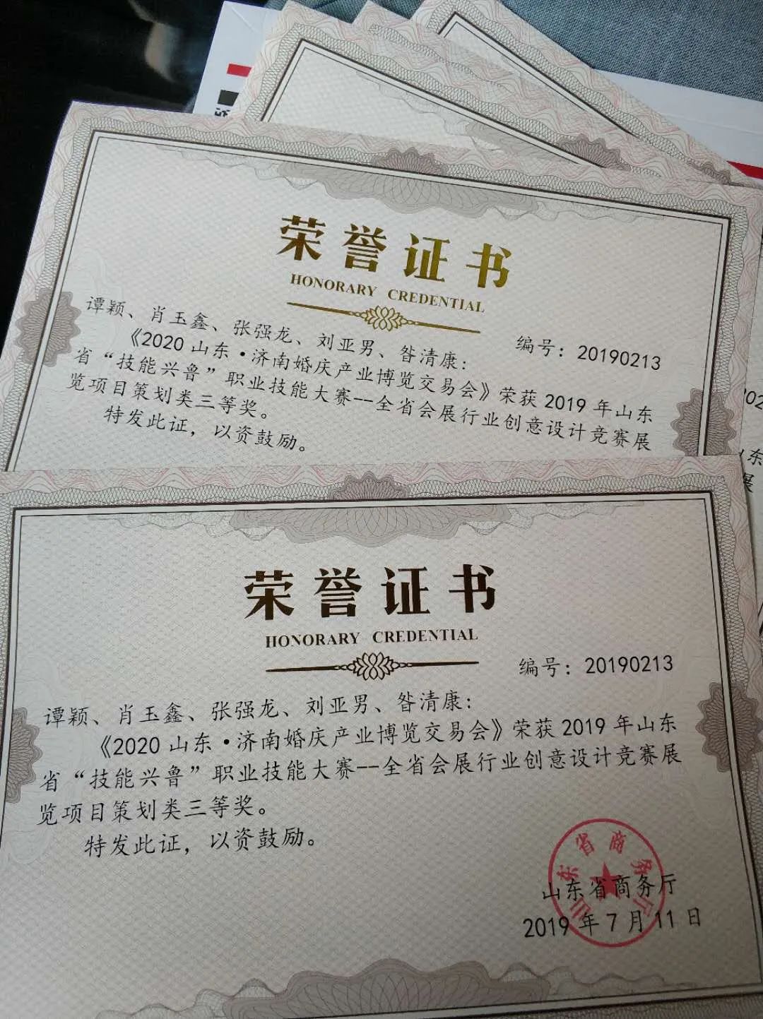1.山东省第五届“技能兴鲁”职业技能大赛——全省会展行业创意设计大赛(1)2名教师获优秀指导教师奖;(2)2个团队的参赛作品获得三等奖。