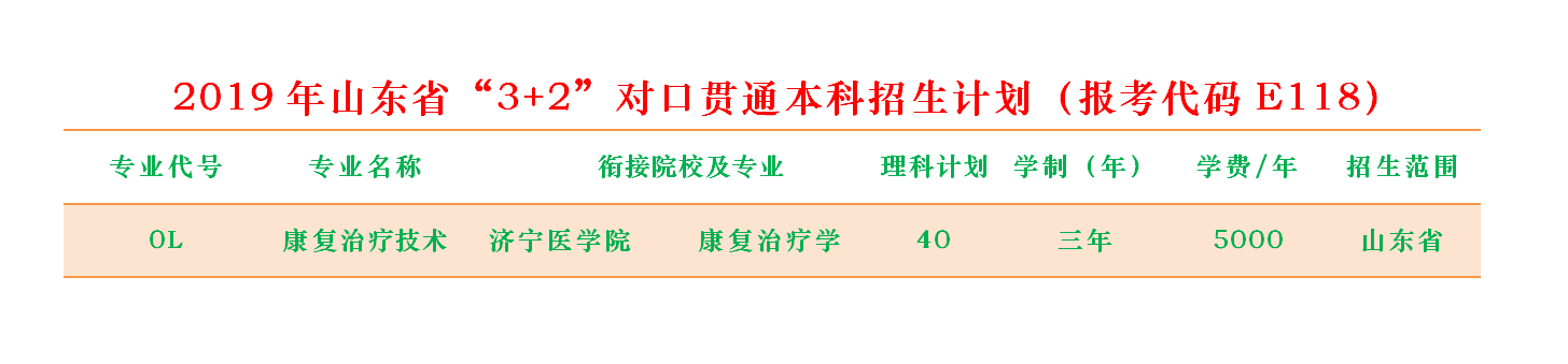 2019年山东省“3+2”对口贯通本科招生计划(报考代码E118)