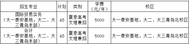 2017年单独招生泰安新校区(泰安基地)招生计划