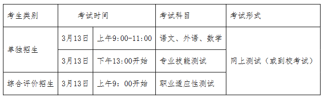 考试科目包括语文、外语、数学三科,采用合卷形式,总分150分,其中语文、外语、数学各占50分,考试时间为120分钟,利用网上考试系统(或到校考试)进行。