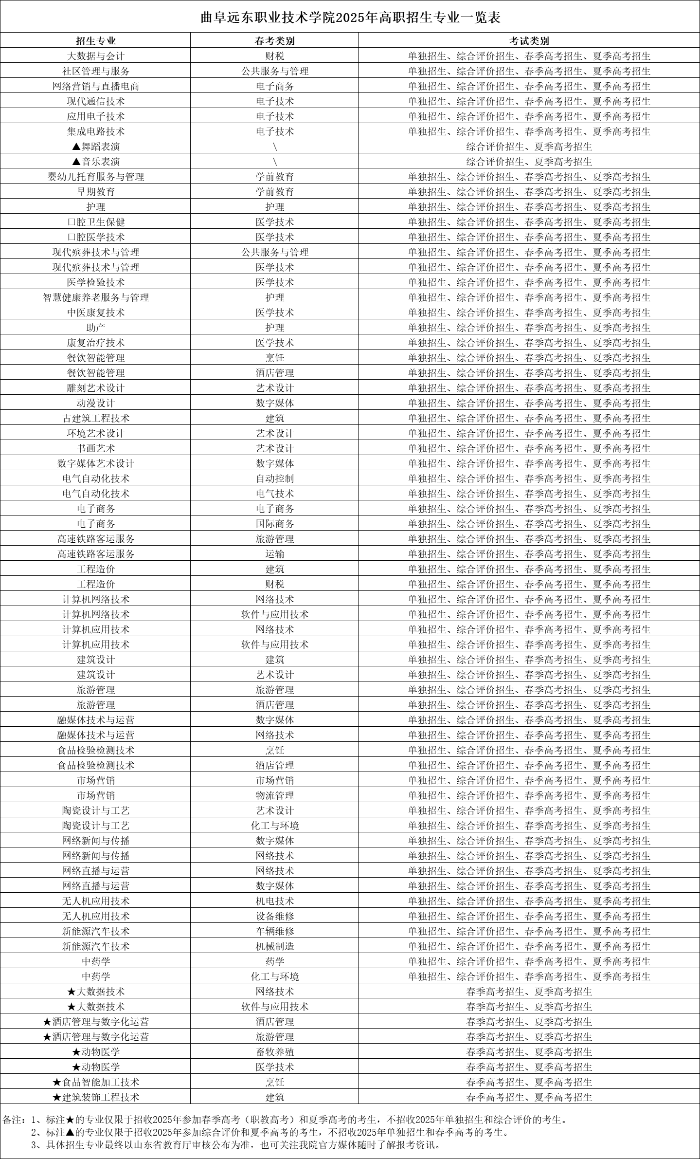 曲阜远东职业技术学院2025年高职招生专业一览表