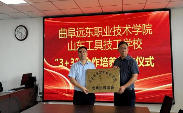 尹德亮表示,山东工具技工学校作为一所中职阶段的学校,每年给高职院校输送众多优质生源,我院作为一所建校26年的山东最早的高职院校之一,将继续深入加强与山东工具技工学校的合作,为学生进入曲阜远东职业技术学院继续深造提供平台和支持,为国家培养更多的优秀实用型技能型高级人才。随后,尹德亮代表我院授予山东工具技工学校“优质生源基地”牌匾。