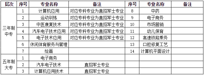 我院五年一贯制大专、三年制中专专业一览表: