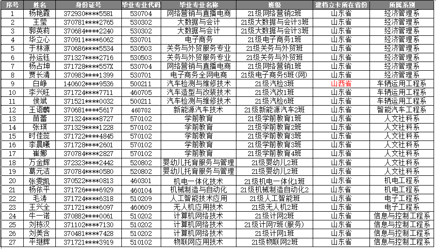 (此表为申请建档立卡名单,审核通过名单请以山东省招生考试院官网公布为准,如有遗漏,请与学院招生与就业处王老师联系)