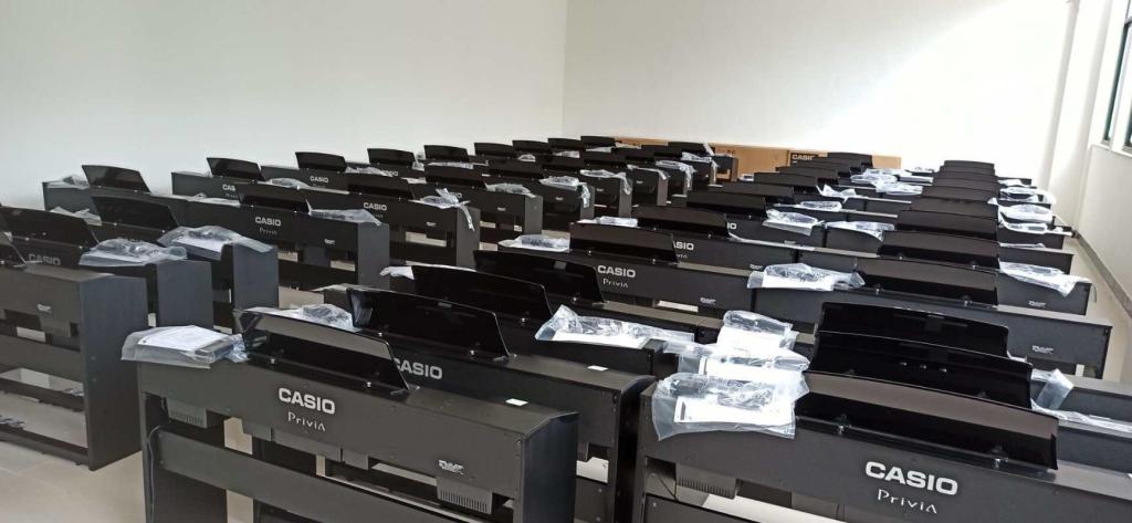 本专业校内拥有建筑面积约为1160平米的音乐表演实训基地,拥有数码钢琴实训室1、数码钢琴实训室2、数码钢琴实训室3、数码钢琴实训室4、声乐实训室、舞蹈实训室1、舞蹈实训室2、钢琴实训室、军乐实训室、合唱实训室、民乐实训室、民族舞蹈实训室、健美操实训室、主持与朗诵实训室、美育实训室,共15间实训室,并在2022年拟建成琴房(单间)60间,拟于2023年投入。使用实训室内配备足够的教学设备以及日用耗材等,能够满足学生各方面的实训要求。